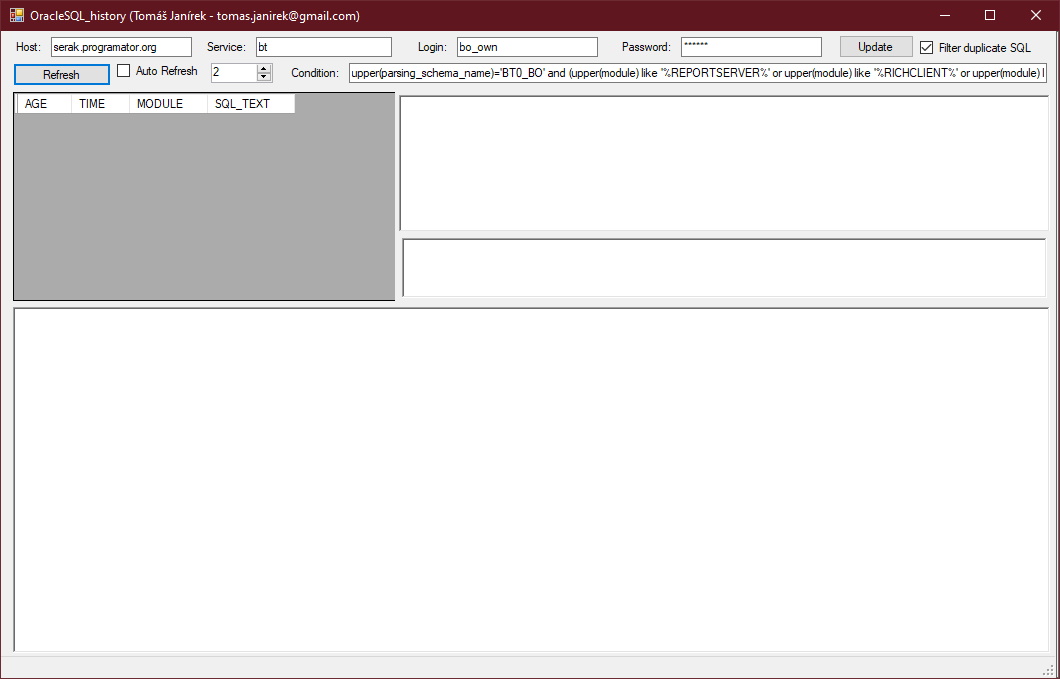 Program slouží k zobrazení SQL, které běžely na Oracle serveru dané instance + zobrazení explain plánu pro jednotlivé SQL.
